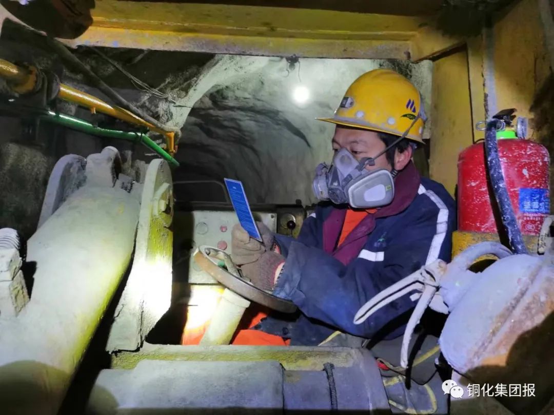下圖:鏟運機司機蔣繼能在作業前閱讀風險識別卡。