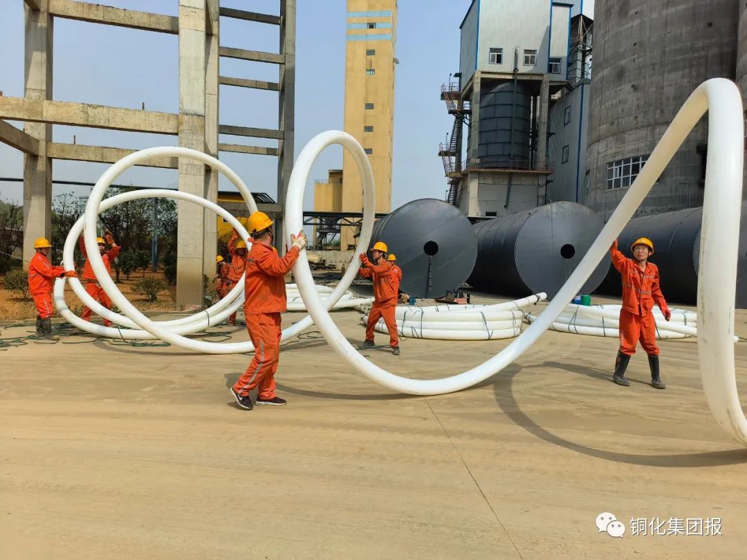 在施工現(xiàn)場,工人師傅們或肩扛,或手拉,全力完成管道鋪設(shè)任務(wù)。充填管道盤起來時直徑較大,運(yùn)輸起來很麻煩;管道壁較厚,捋直也是對技巧、體力和耐力的考驗。師傅們將洗潔精涂在內(nèi)接外壁上進(jìn)行潤滑,一絲一絲將內(nèi)接塞入管道內(nèi)。卡箍、拉桿等每一道工序都需要細(xì)致檢查,才能確保接好的管道投用后無“跑、冒、滴、漏”現(xiàn)象。在大家的共同努力下,三百多米的充填管道很快鋪設(shè)完畢,為后續(xù)負(fù)36米平臺新建水泵房的邊坡支護(hù)及采坑生態(tài)修復(fù)創(chuàng)造了條件。