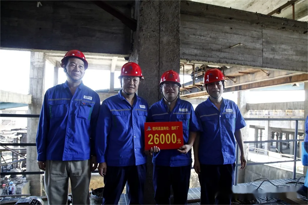 7月30日上午,礦業公司黨政領導班子分3組分別到選礦廠、露天礦、綜合保障部、技術中心、工程工區全尾充填等生產崗位慰問,為高溫堅守崗位的員工送上礦泉水、飲料、毛巾、香皂等防暑禮包,共計520份。